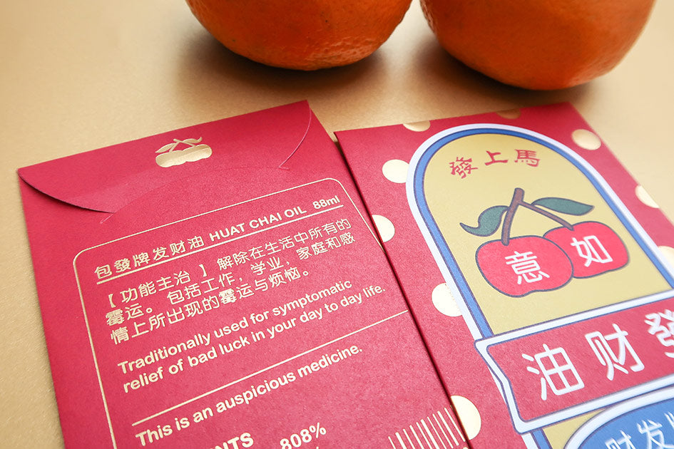Bring extra fortune this Lunar New Year with our Huat Chai Oil Red Packet! Inspired by traditional Ruyi Oil packaging, these red packets are designed with a playful twist — a modern, festive way to spread wealth and good luck. Perfect for gifting to family, friends, or colleagues, and sure to add a touch of huat to any celebration!