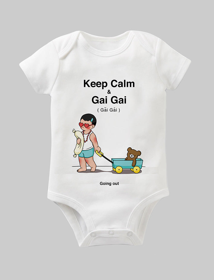 Time to keep calm and... gai gai! This cheerful baby romper celebrates every little one’s favourite activity — going out and about. Whether it’s a trip to the mall, the market, or just a stroll downstairs, this romper adds a fun local twist to your baby's outfit.