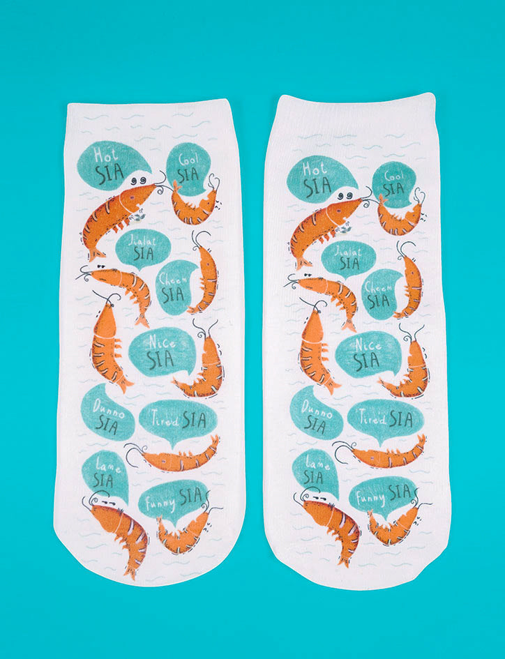 Grab a pair of quirky "Sia" socks and show off your Singlish skills today!