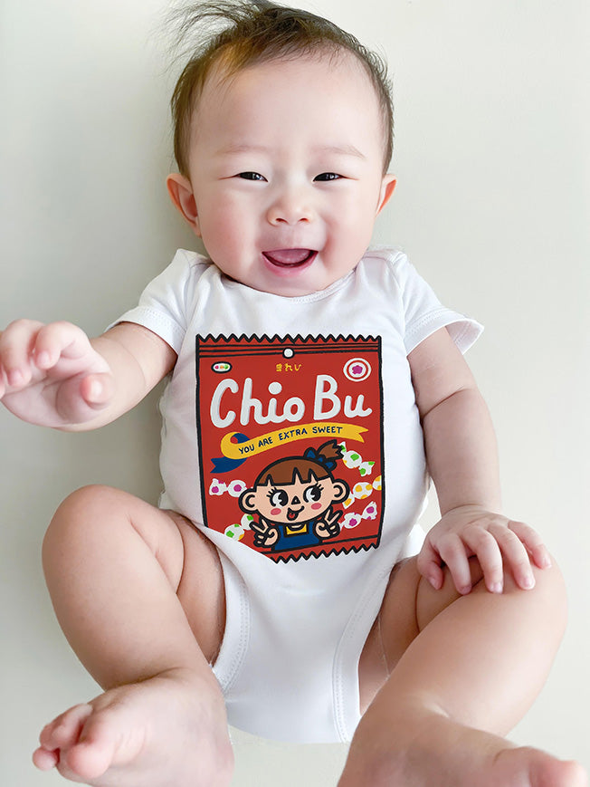 Turn up the cuteness with our Chio Bu baby romper — a cheeky local twist on the iconic Japanese Milky candy design. Whether your little one is full of charm or just starting to babble, this romper brings a playful dose of Singapore-style humour to everyday wear.