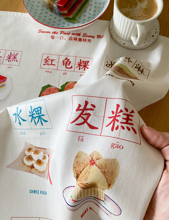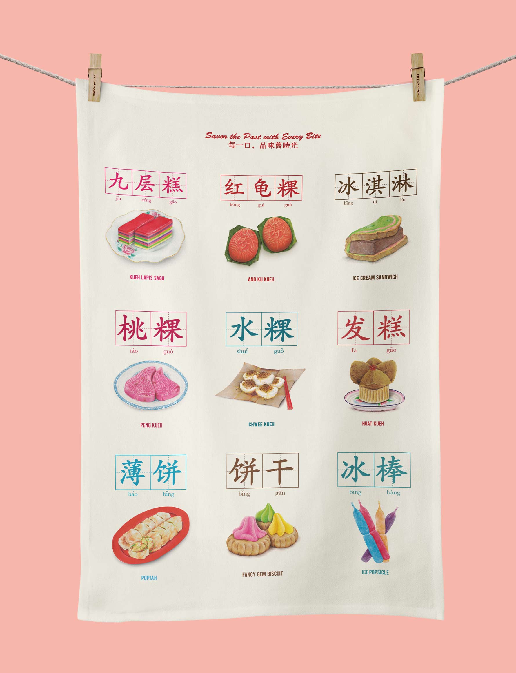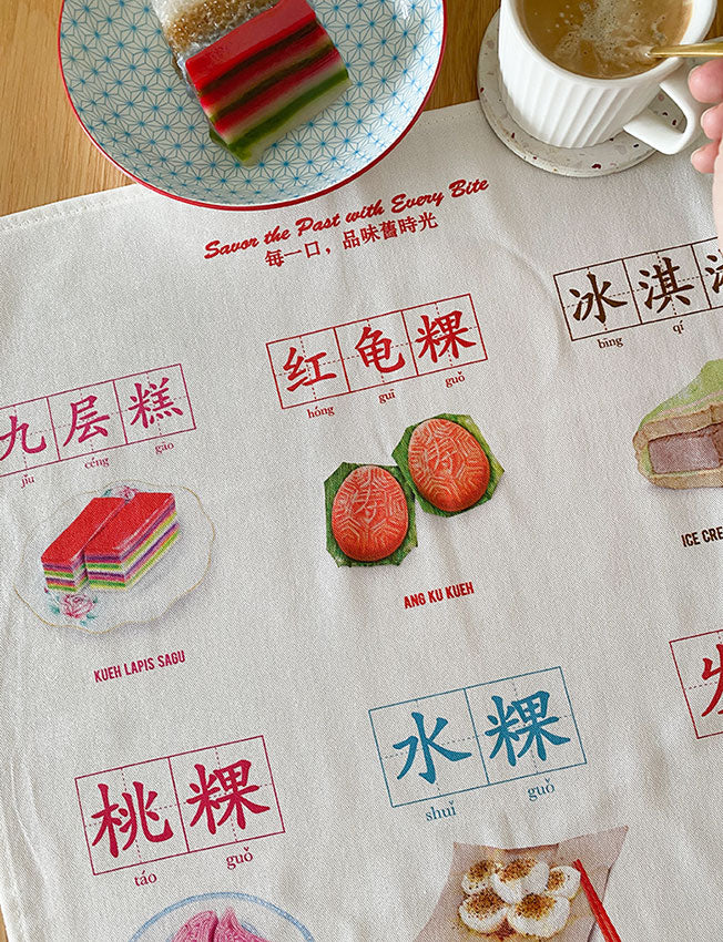 Wipe, dry, and reminisce with this tea towel featuring iconic local snacks! From colorful kueh and classic fancy gem biscuits to old-school ice popsicles, this design brings a delicious dose of nostalgia to your kitchen. Perfect for gifting or adding a local touch to your home!