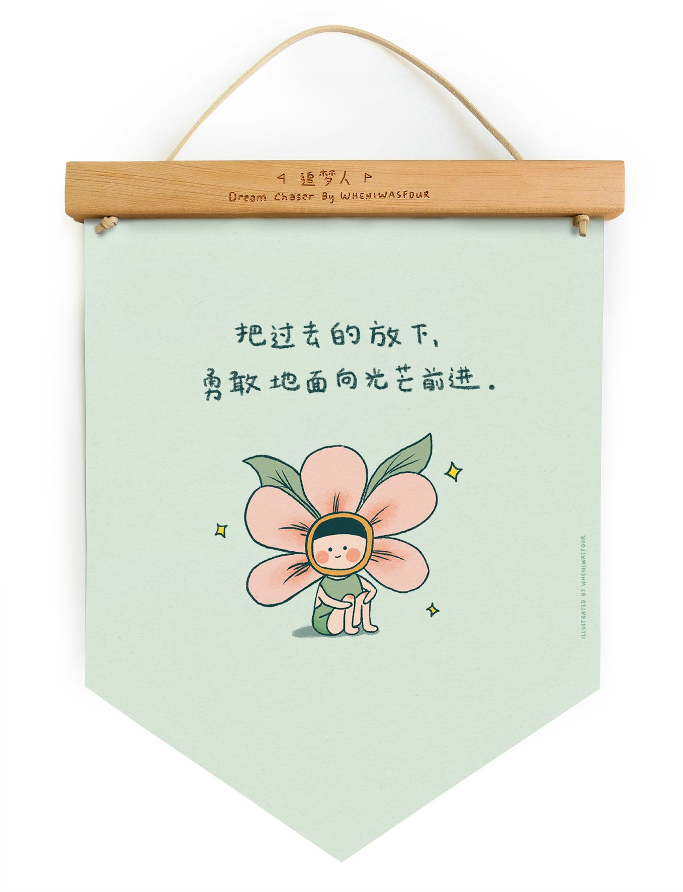 English Translation: Let go of the past bravely, and persevere on towards brighter days.