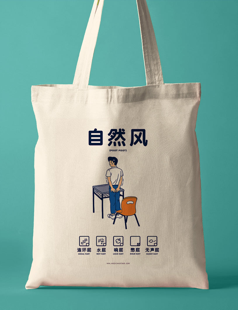 Introducing our "自然风,Natural Wind" Poot Poot Series tote bags! These bags add a whimsical touch to your daily essentials with humorous illustrations celebrating various types of flatulence. Perfect for any casual outing, our Poot Poot Series offers designs to match your mood – from the silent-but-deadly to the rip-roaring and everything in between. These totes are both quirky and versatile, sure to spark conversations and bring a playful element to your daily carry. Grab one today and let the wind of humor blow through your world!
