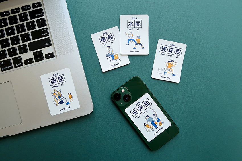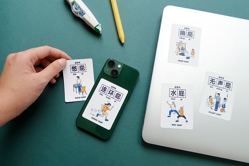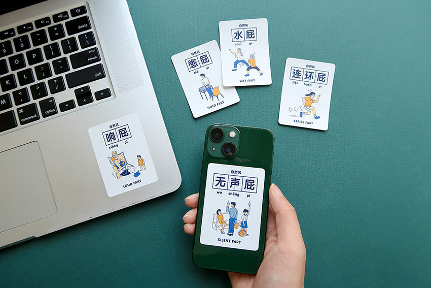 Introducing our "自然风,Natural Wind" Poot Poot Series Waterproof Decal Stickers. Add a whimsical touch to everyday items with humorous illustrations celebrating various types of flatulence. These stickers are waterproof and durable, suitable for use on water bottles, laptops, phones, and more. Our Poot Poot Series has a sticker to match your mood – from the silent-but-deadly to the rip-roaring and everything in between.. These decals are quirky and versatile, sparking conversations and adding fun to belongings. Get a set today and let the wind of humor blow through your world!