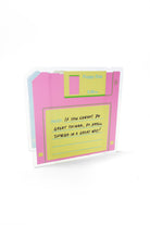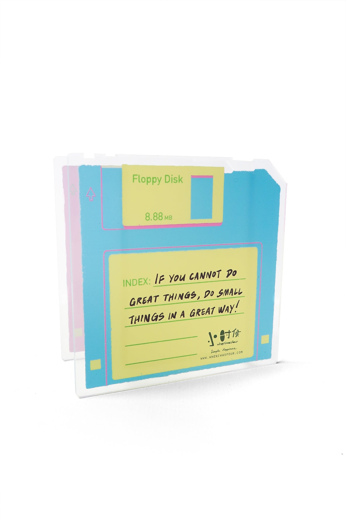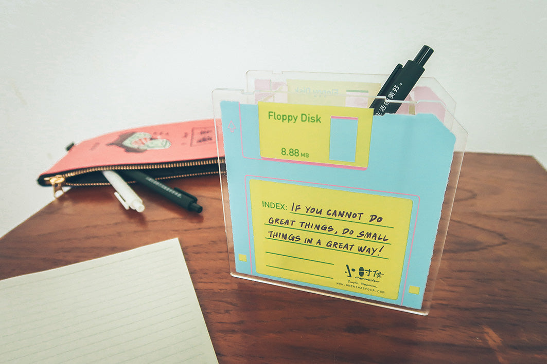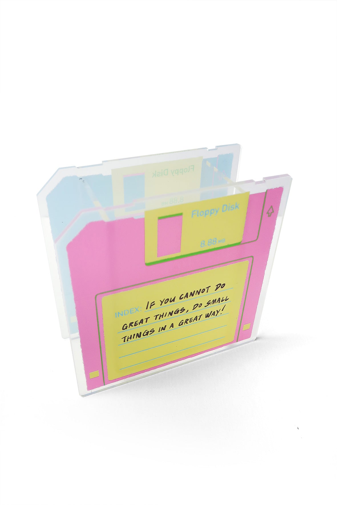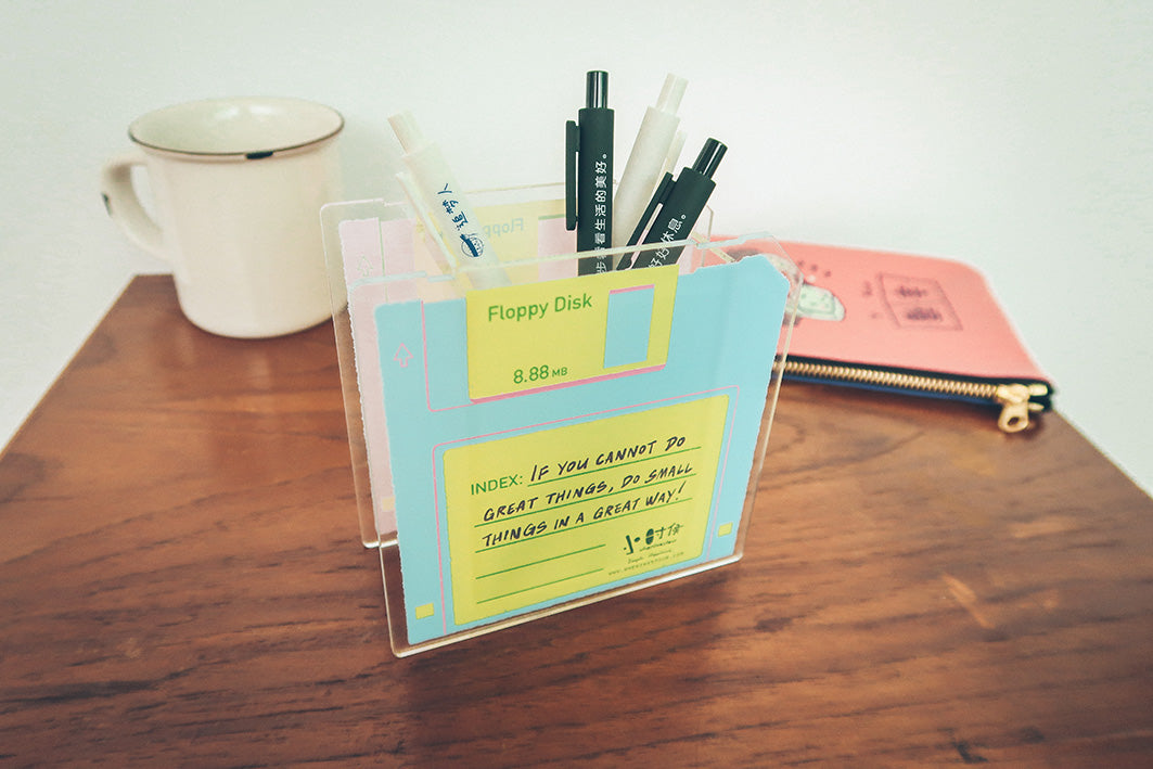 Upgrade your desk game with a retro touch! Our pen holder pays homage to the classic floppy disk design, while reminding you to stay motivated with an inspiring verse.