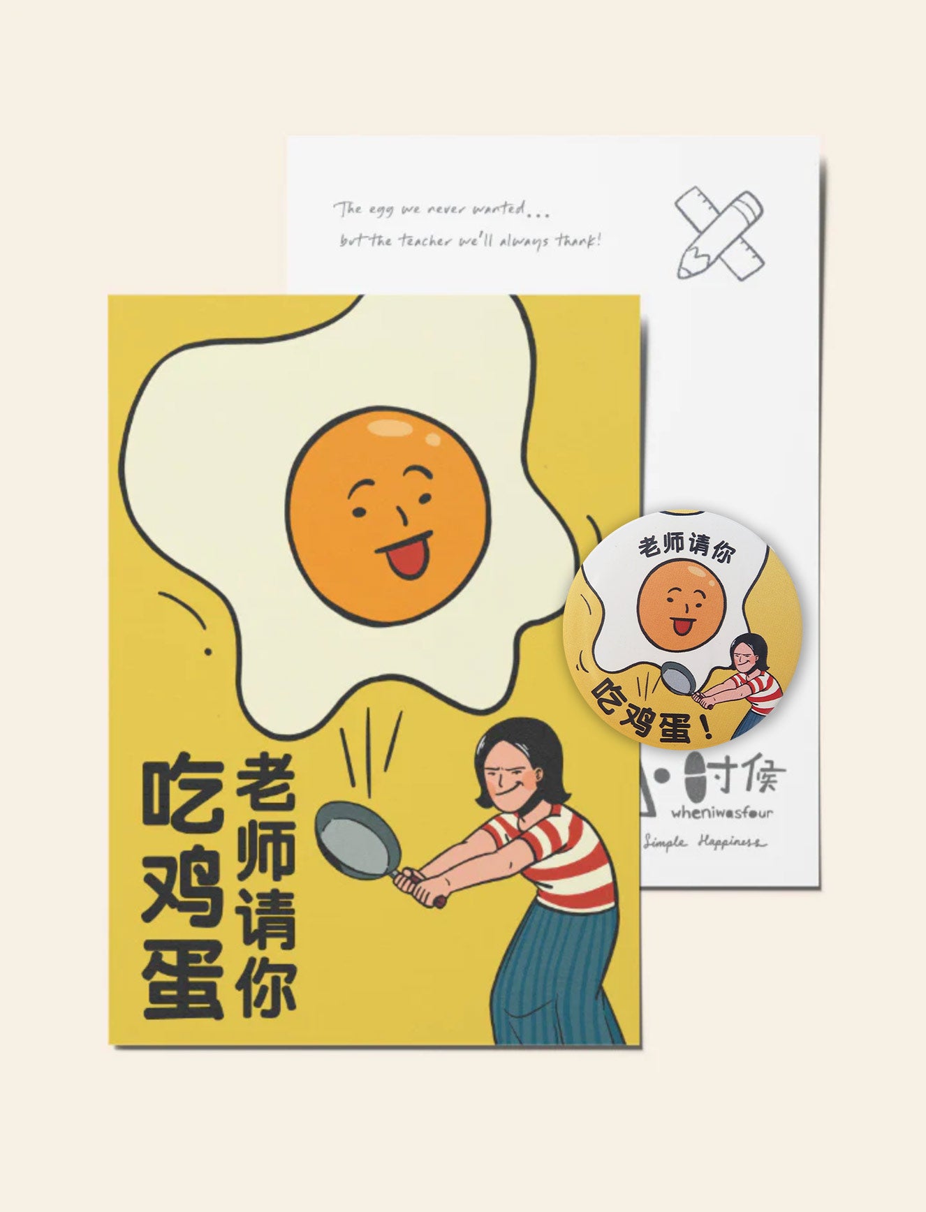A funny, nostalgic Teacher’s Day card featuring “老师请你吃鸡蛋”. Perfect for giving your teacher a quirky smile and a playful nod to classroom memories!