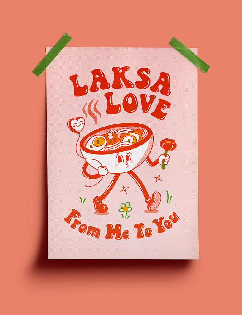 Laksa (lotsa) love from me to you! This poster is perfect as a gift to express your love to your partner in a punny way. Grab yours now, just in time for Valentine's Day!