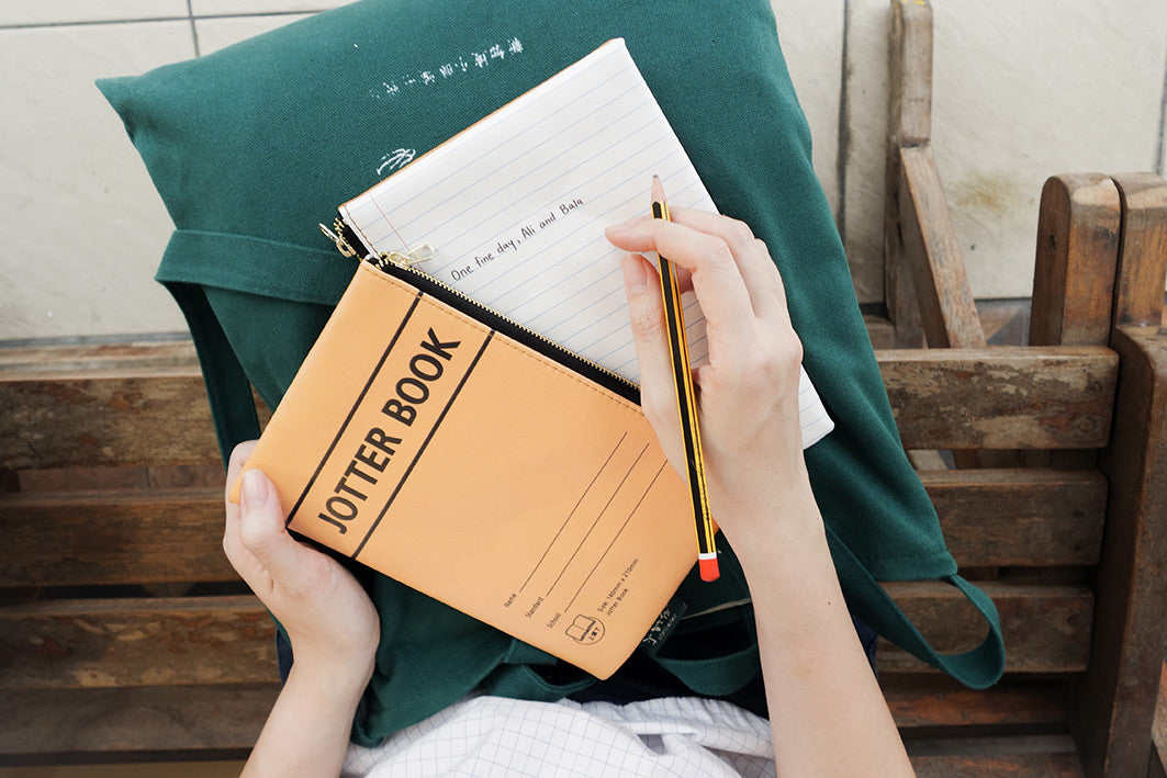 Introducing our versatile Back-to-School Jotter Book pouch, reminiscent of the classic little brown books we used for assignment. This multipurpose pouch keeps your daily essentials organized and easily accessible. With ample storage space for pens, pencils, erasers, and more, it's designed to declutter your bag or backpack. Its durable material and sleek design add a touch of retro charm to your school or work ensemble. Experience the perfect blend of functionality and vintage-inspired style with our Jotter Book pouch, bringing back the nostalgia while keeping you organized on the go.