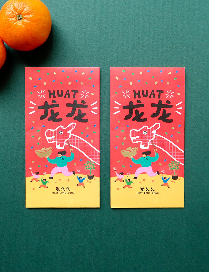 Celebrate the 2024 Chinese New Year with our special red packets. These vibrant envelopes playfully incorporate the pronunciation of '龙' as 'long' to wish for 'Huat long long' prosperity, 'Peace long long' tranquility, and 'Healthy long long' well-being. They feature a nostalgic local Dragon playground in a joyful dragon dance, symbolizing strength and resilience, making your New Year celebrations truly memorable and culturally rich. Embrace the spirit of 'Huat long long' with our unique red packets.