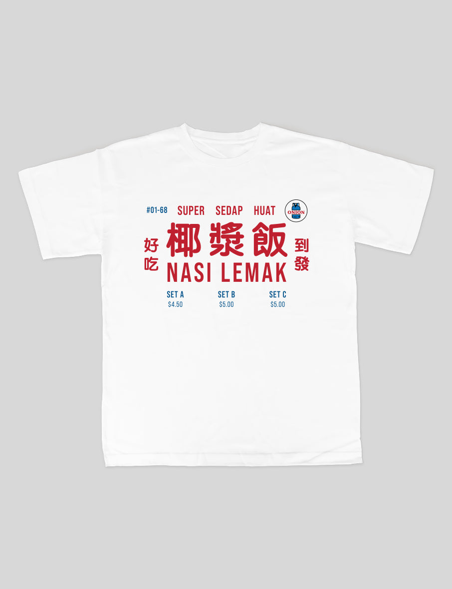 Immerse yourself in the rich flavors of Singapore with our Nasi Lemak T-shirt! Featuring an iconic retro hawker signboard design, this unique garment celebrates your love for this classic dish. Start conversations and evoke the aroma of fragrant rice, crispy ikan bilis, and spicy sambal with this delightful piece. Capture the essence of Singapore's culinary heritage with this iconic T-shirt!