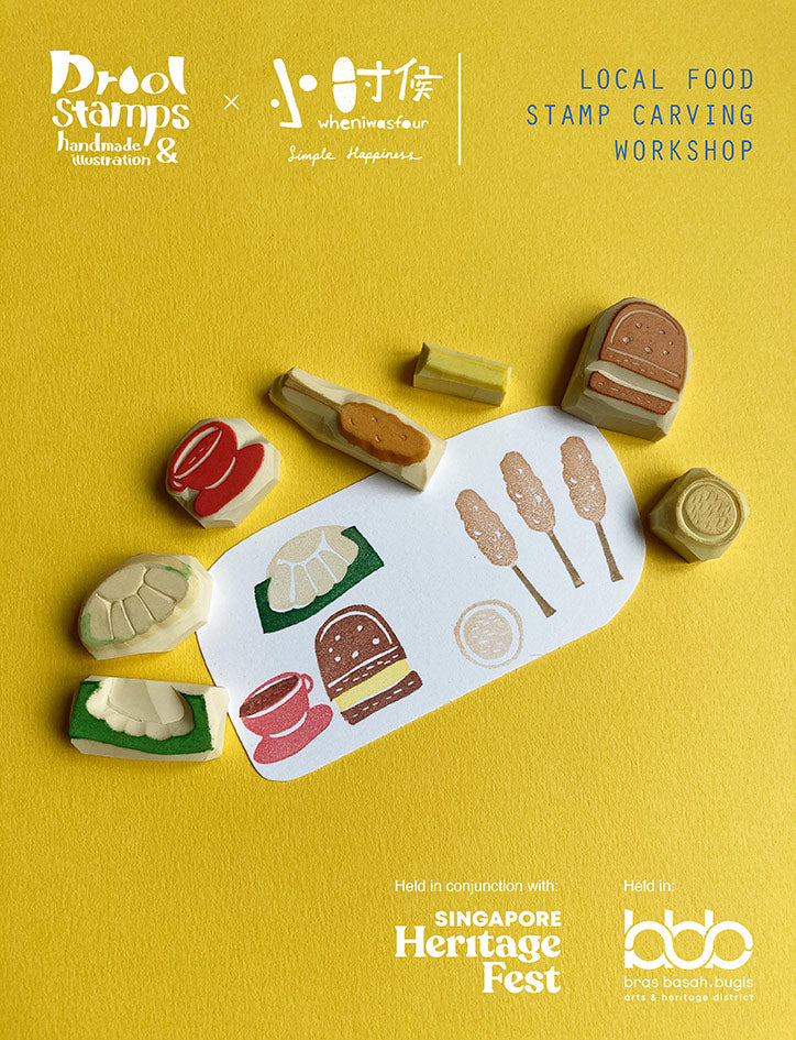 Come join us for a fun time of crafting your own local food stamps with Rachel from Droolstamps! As a passionate illustrator and rubber stamp designer, Rachel will guide you through an understanding of the tools required and steps to create your very own uniquely crafted stamps! By the end of the workshop, you will be able to bring home your food stamp and a postcard for yourself or loved ones! This is a beginner-friendly workshop, all tools and materials will be provided.