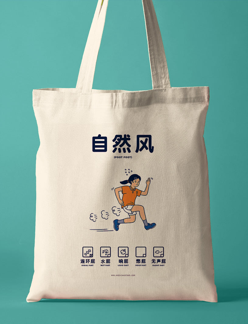 Introducing our "自然风,Natural Wind" Poot Poot Series tote bags! These bags add a whimsical touch to your daily essentials with humorous illustrations celebrating various types of flatulence. Perfect for any casual outing, our Poot Poot Series offers designs to match your mood – from the silent-but-deadly to the rip-roaring and everything in between. These totes are both quirky and versatile, sure to spark conversations and bring a playful element to your daily carry. Grab one today and let the wind of humor blow through your world!